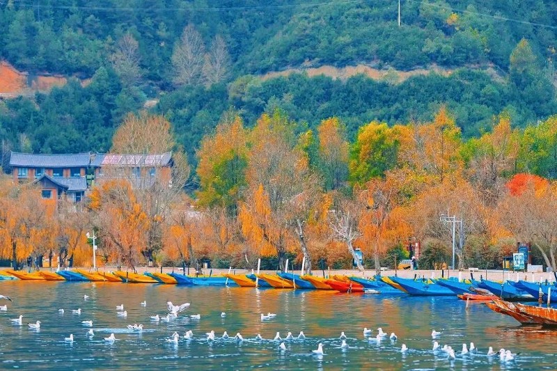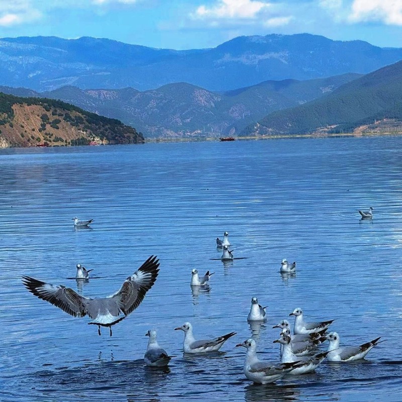 瀘沽湖的澄澈湖水,不僅倒映著藍天白云,更滋養(yǎng)著豐富的水生生物。得天獨厚的生態(tài)優(yōu)勢,讓瀘沽湖成為候鳥越冬的“理想家園”。每年秋冬季節(jié),上萬只紅嘴鷗便會展開漫長的遷徙之旅,跨越萬水千山,最終選擇停駐在瀘沽湖畔。對它們而言,這里不僅有能果腹的食物,更有安全的棲息環(huán)境,是名副其實的“安全越冬驛站”。